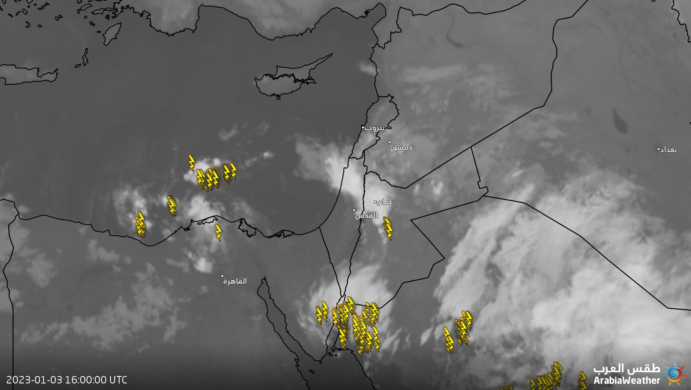 بدأ الذُروة الفعلية للأحوال الجوية الغير مُستقِرة وسط توقعات تُشير إلى إشتِداد هطول الأمطار مع ترافقها بحدوث العواصف الرعدية وتساقط زخات مِن البرد خاصة في هذه المناطق( عمان ، الكرك ، الطفيلة ، معان ، العقبة ، مأدبا ،